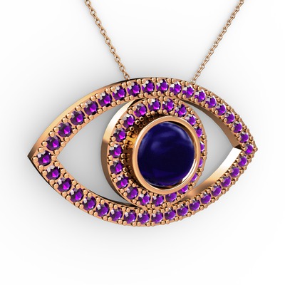 Lab safir ve ametist 925 ayar rose altın kaplama gümüş kolye (40 cm rose altın rolo zincir)