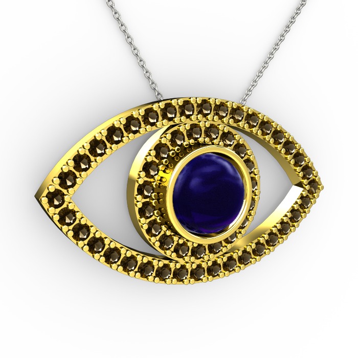 Lab safir ve dumanlı kuvars 8 ayar altın kolye (40 cm beyaz altın rolo zincir)