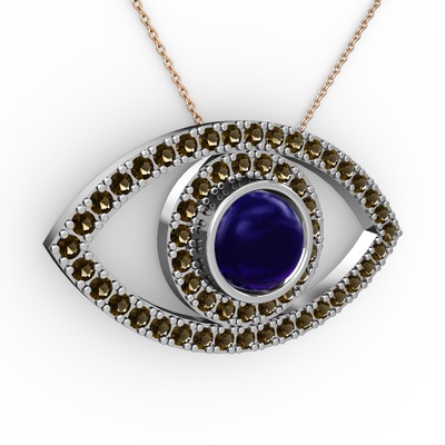 Lab safir ve dumanlı kuvars 925 ayar gümüş kolye (40 cm gümüş rolo zincir)