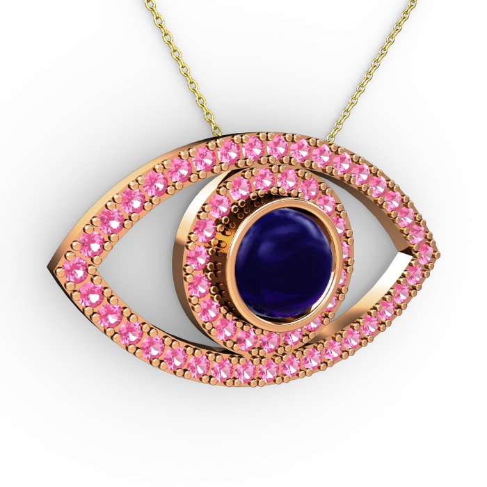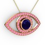 Lab safir ve pembe kuvars 8 ayar rose altın kolye (40 cm altın rolo zincir)