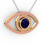 Lab safir ve pembe kuvars 925 ayar altın kaplama gümüş kolye (40 cm beyaz altın rolo zincir)
