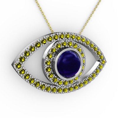 Lab safir ve peridot 18 ayar beyaz altın kolye (40 cm gümüş rolo zincir)