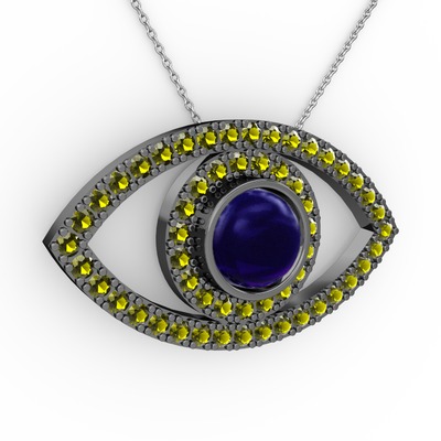 Lab safir ve peridot 925 ayar siyah rodyum kaplama gümüş kolye (40 cm beyaz altın rolo zincir)
