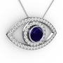 Lab safir ve pırlanta 18 ayar beyaz altın kolye (0.605 karat, 40 cm beyaz altın rolo zincir)