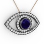 Lab safir ve pırlanta 925 ayar siyah rodyum kaplama gümüş kolye (0.605 karat, 40 cm gümüş rolo zincir)