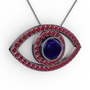 Lab safir ve rodolit garnet 925 ayar siyah rodyum kaplama gümüş kolye (40 cm gümüş rolo zincir)