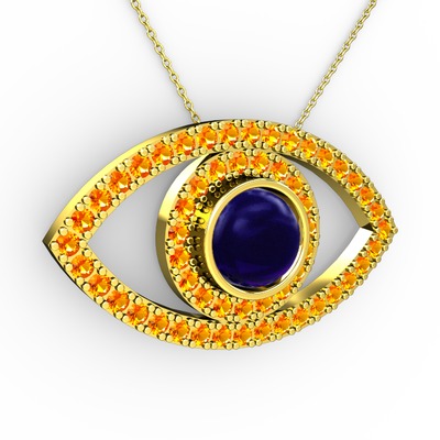 Lab safir ve sitrin 14 ayar altın kolye (40 cm altın rolo zincir)