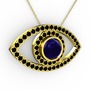 Lab safir ve siyah zirkon 925 ayar altın kaplama gümüş kolye (40 cm gümüş rolo zincir)