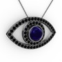 Lab safir ve siyah zirkon 925 ayar siyah rodyum kaplama gümüş kolye (40 cm gümüş rolo zincir)