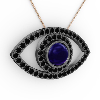 Lab safir ve siyah zirkon 925 ayar siyah rodyum kaplama gümüş kolye (40 cm rose altın rolo zincir)