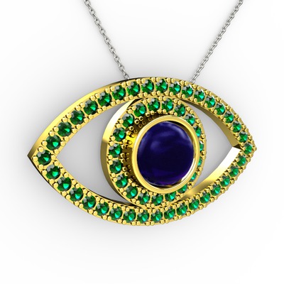 Lab safir ve yeşil kuvars 8 ayar altın kolye (40 cm beyaz altın rolo zincir)