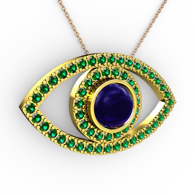 Lab safir ve yeşil kuvars 8 ayar altın kolye (40 cm gümüş rolo zincir)