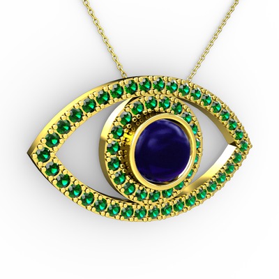 Lab safir ve yeşil kuvars 925 ayar altın kaplama gümüş kolye (40 cm altın rolo zincir)