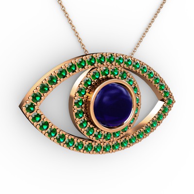 Lab safir ve yeşil kuvars 925 ayar rose altın kaplama gümüş kolye (40 cm rose altın rolo zincir)