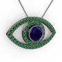 Lab safir ve yeşil kuvars 925 ayar siyah rodyum kaplama gümüş kolye (40 cm gümüş rolo zincir)