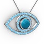 Turkuaz ve akuamarin 14 ayar beyaz altın kolye (40 cm gümüş rolo zincir)