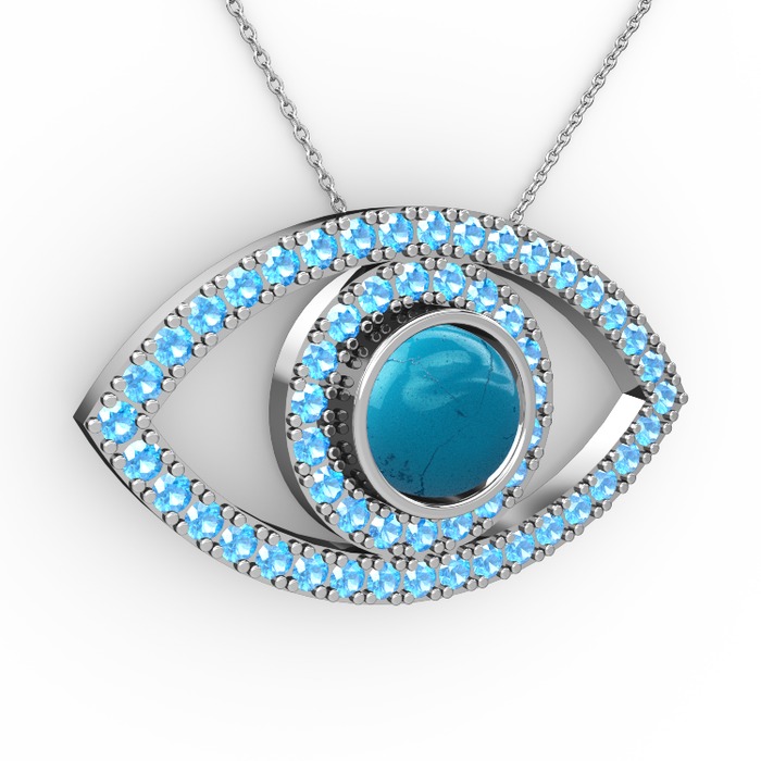 Turkuaz ve akuamarin 18 ayar beyaz altın kolye (40 cm beyaz altın rolo zincir)