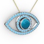 Turkuaz ve akuamarin 925 ayar gümüş kolye (40 cm altın rolo zincir)