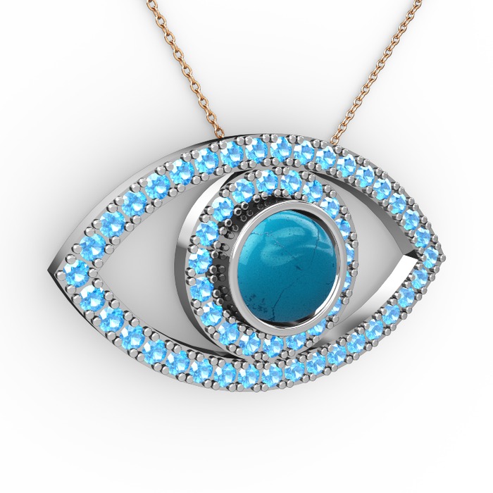 Turkuaz ve akuamarin 925 ayar gümüş kolye (40 cm gümüş rolo zincir)