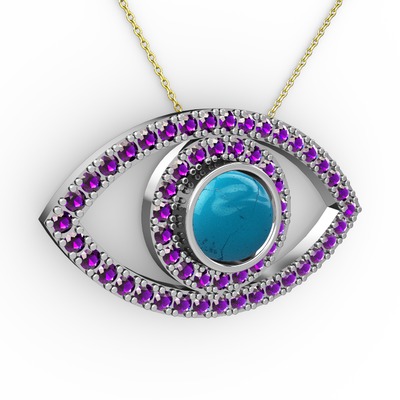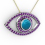 Turkuaz ve ametist 14 ayar beyaz altın kolye (40 cm altın rolo zincir)