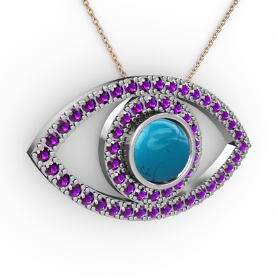 Turkuaz ve ametist 8 ayar beyaz altın kolye (40 cm gümüş rolo zincir)
