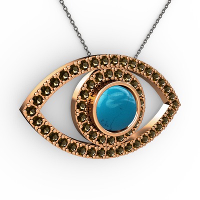 Turkuaz ve dumanlı kuvars 14 ayar rose altın kolye (40 cm gümüş rolo zincir)