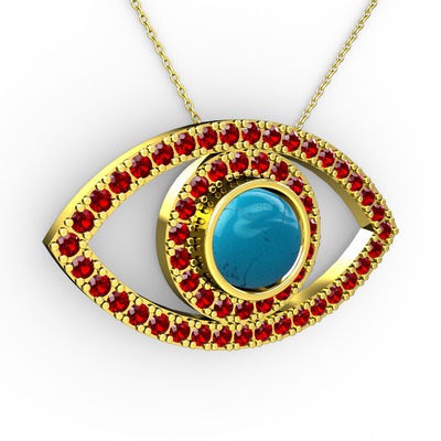 Turkuaz ve garnet 925 ayar altın kaplama gümüş kolye (40 cm altın rolo zincir)