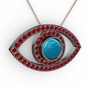 Turkuaz ve garnet 925 ayar siyah rodyum kaplama gümüş kolye (40 cm gümüş rolo zincir)
