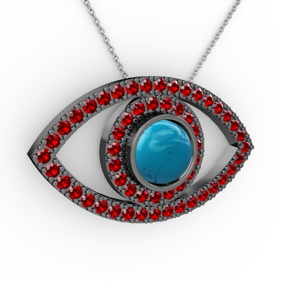 Turkuaz ve garnet 925 ayar siyah rodyum kaplama gümüş kolye (40 cm gümüş rolo zincir)