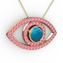 Turkuaz ve pembe kuvars 14 ayar rose altın kolye (40 cm altın rolo zincir)