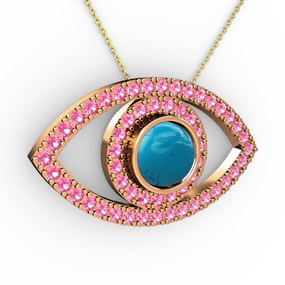 Turkuaz ve pembe kuvars 14 ayar rose altın kolye (40 cm gümüş rolo zincir)