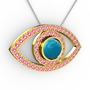 Turkuaz ve pembe kuvars 18 ayar altın kolye (40 cm gümüş rolo zincir)