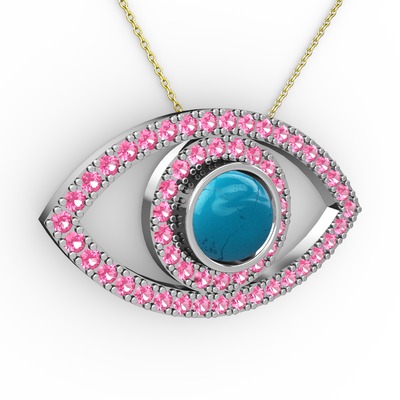 Turkuaz ve pembe kuvars 18 ayar beyaz altın kolye (40 cm altın rolo zincir)