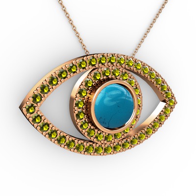 Turkuaz ve peridot 14 ayar rose altın kolye (40 cm gümüş rolo zincir)