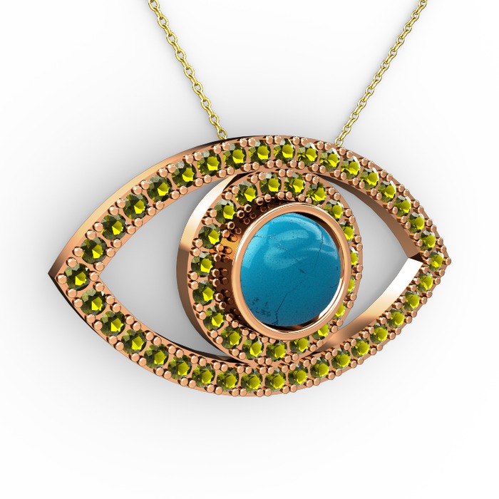 Turkuaz ve peridot 8 ayar rose altın kolye (40 cm altın rolo zincir)