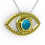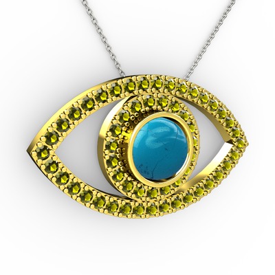 Turkuaz ve peridot 925 ayar altın kaplama gümüş kolye (40 cm beyaz altın rolo zincir)