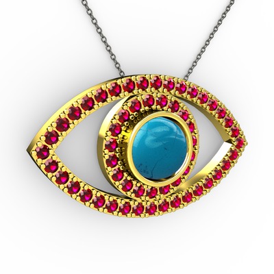Turkuaz ve rodolit garnet 18 ayar altın kolye (40 cm gümüş rolo zincir)