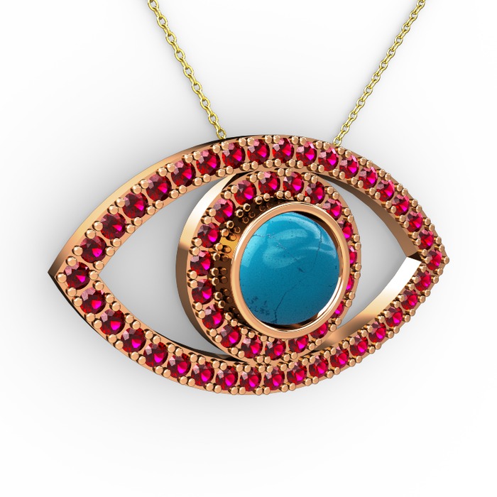 Turkuaz ve rodolit garnet 8 ayar rose altın kolye (40 cm gümüş rolo zincir)