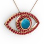 Turkuaz ve rodolit garnet 8 ayar rose altın kolye (40 cm rose altın rolo zincir)