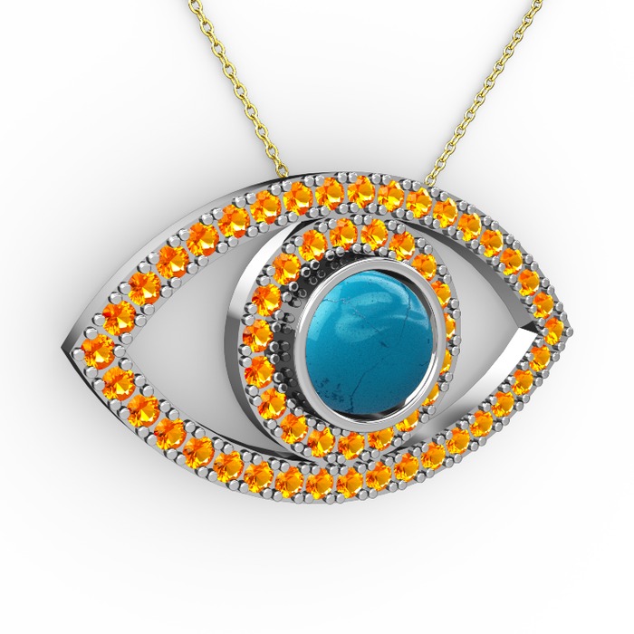 Turkuaz ve sitrin 8 ayar beyaz altın kolye (40 cm altın rolo zincir)