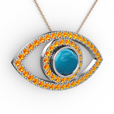 Turkuaz ve sitrin 925 ayar gümüş kolye (40 cm gümüş rolo zincir)