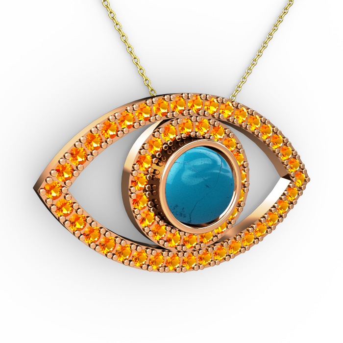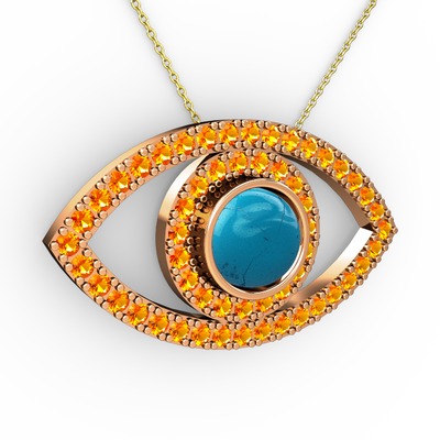 Turkuaz ve sitrin 925 ayar rose altın kaplama gümüş kolye (40 cm altın rolo zincir)
