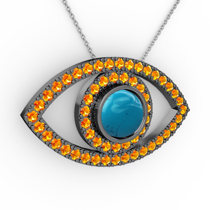 Turkuaz ve sitrin 925 ayar siyah rodyum kaplama gümüş kolye (40 cm gümüş rolo zincir)