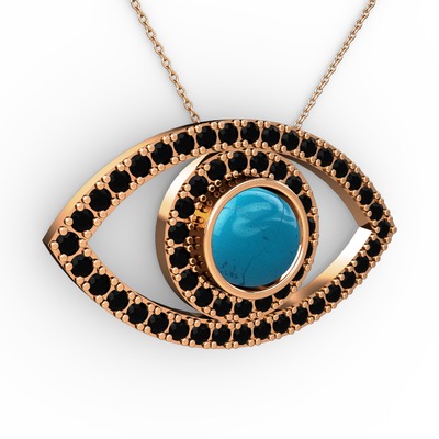 Turkuaz ve siyah zirkon 14 ayar rose altın kolye (40 cm gümüş rolo zincir)