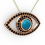 Turkuaz ve siyah zirkon 18 ayar rose altın kolye (40 cm gümüş rolo zincir)
