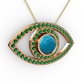 Turkuaz ve yeşil kuvars 8 ayar rose altın kolye (40 cm altın rolo zincir)