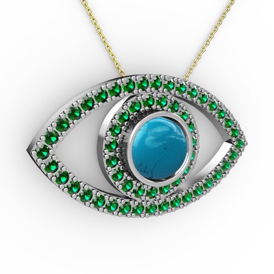 Turkuaz ve yeşil kuvars 925 ayar gümüş kolye (40 cm altın rolo zincir)
