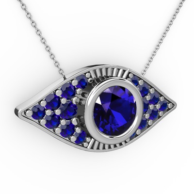 Lab safir 18 ayar beyaz altın kolye (40 cm beyaz altın rolo zincir)