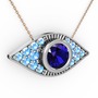 Lab safir ve akuamarin 14 ayar beyaz altın kolye (40 cm rose altın rolo zincir)
