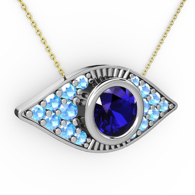 Lab safir ve akuamarin 18 ayar beyaz altın kolye (40 cm altın rolo zincir)